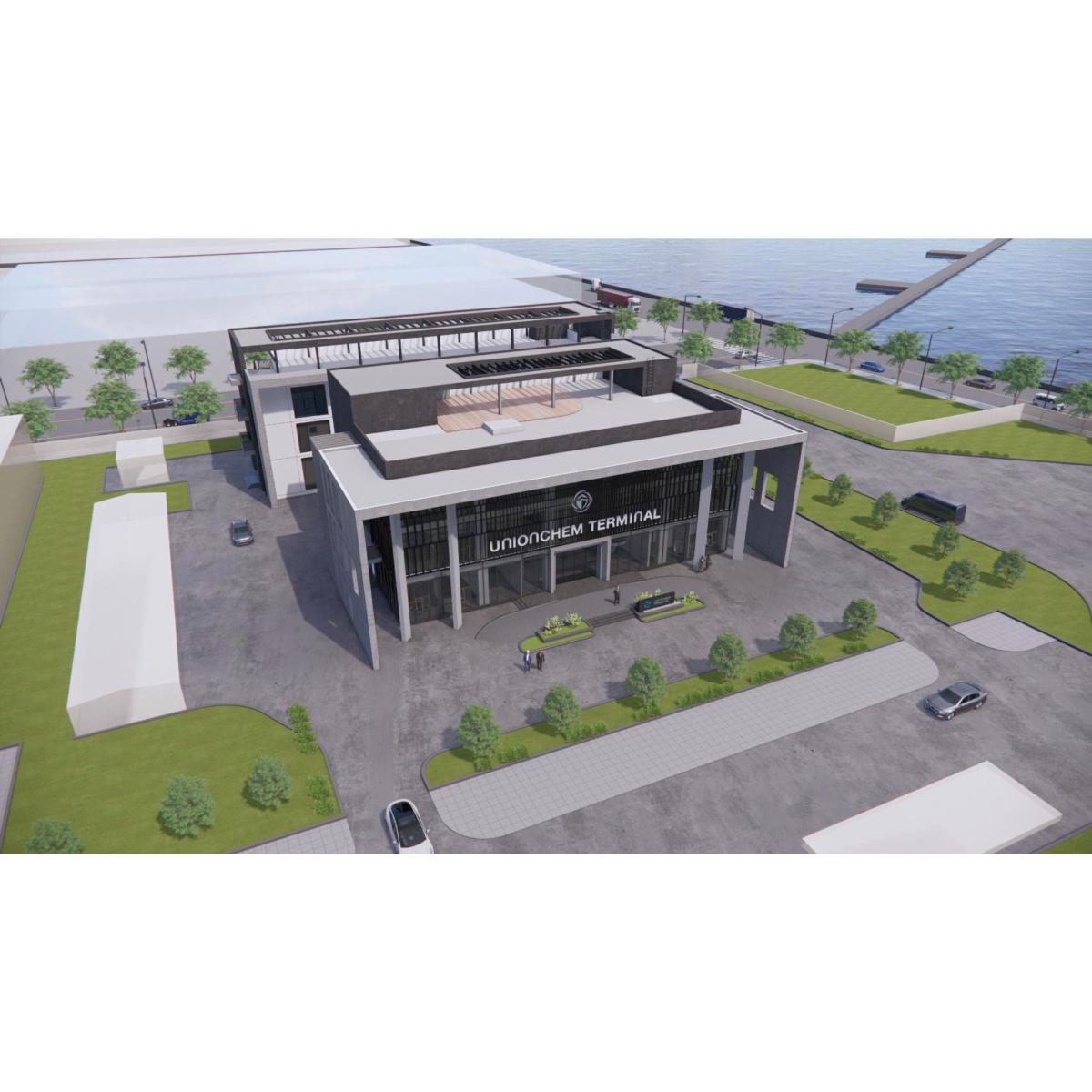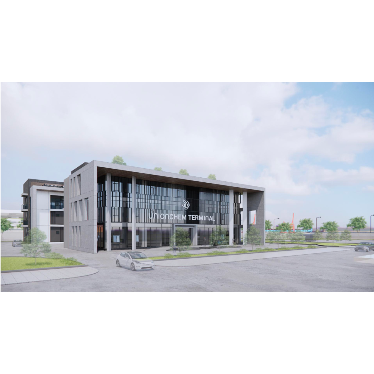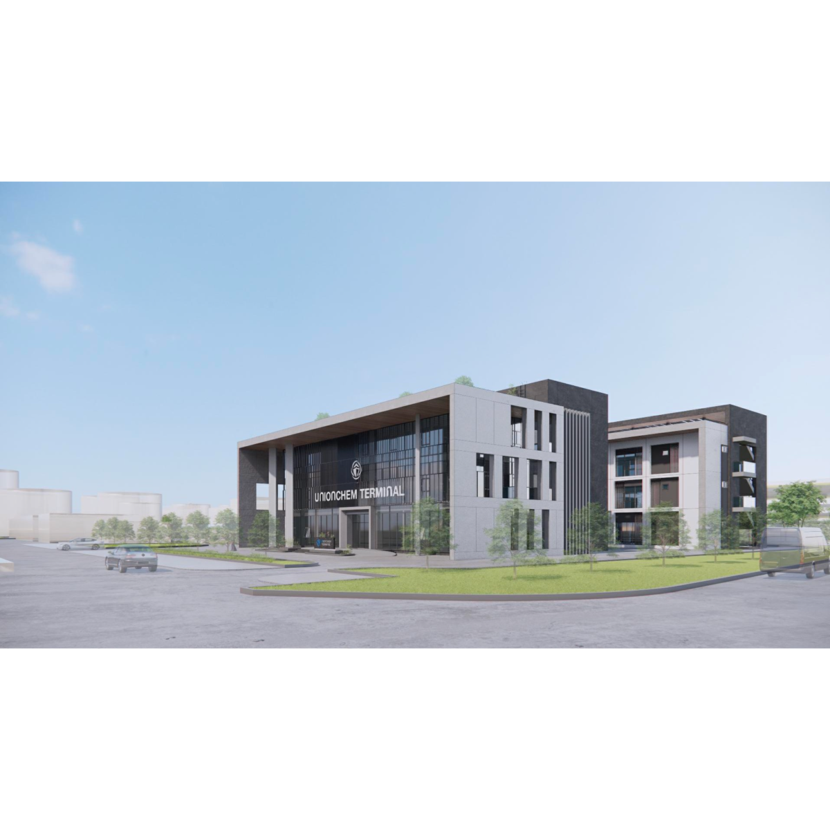坐落於南亭武工業區核心地帶,Unionchem Terminal 總部辦公大樓 展現了公司專業、永續與創新並重的理念。建築外觀以簡約現代為主軸,兼具功能與美學,象徵Unionchem在越南化學品物流產業中領先與穩健的形象。