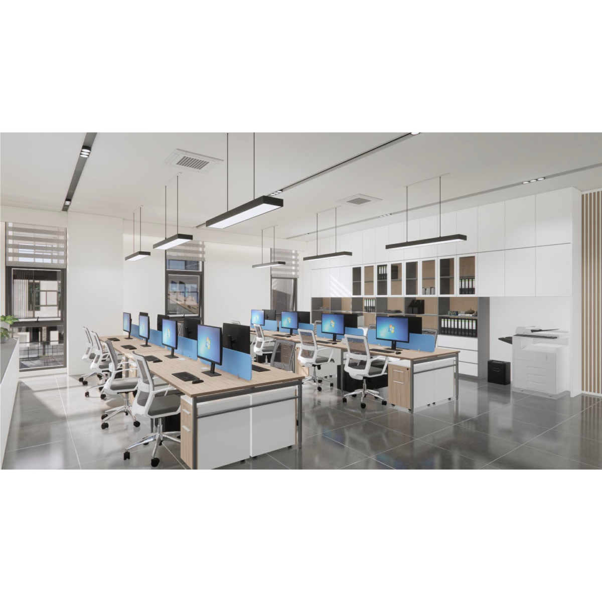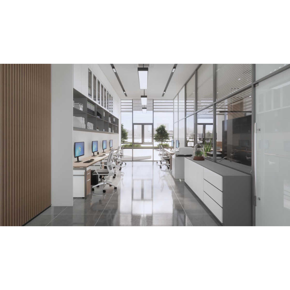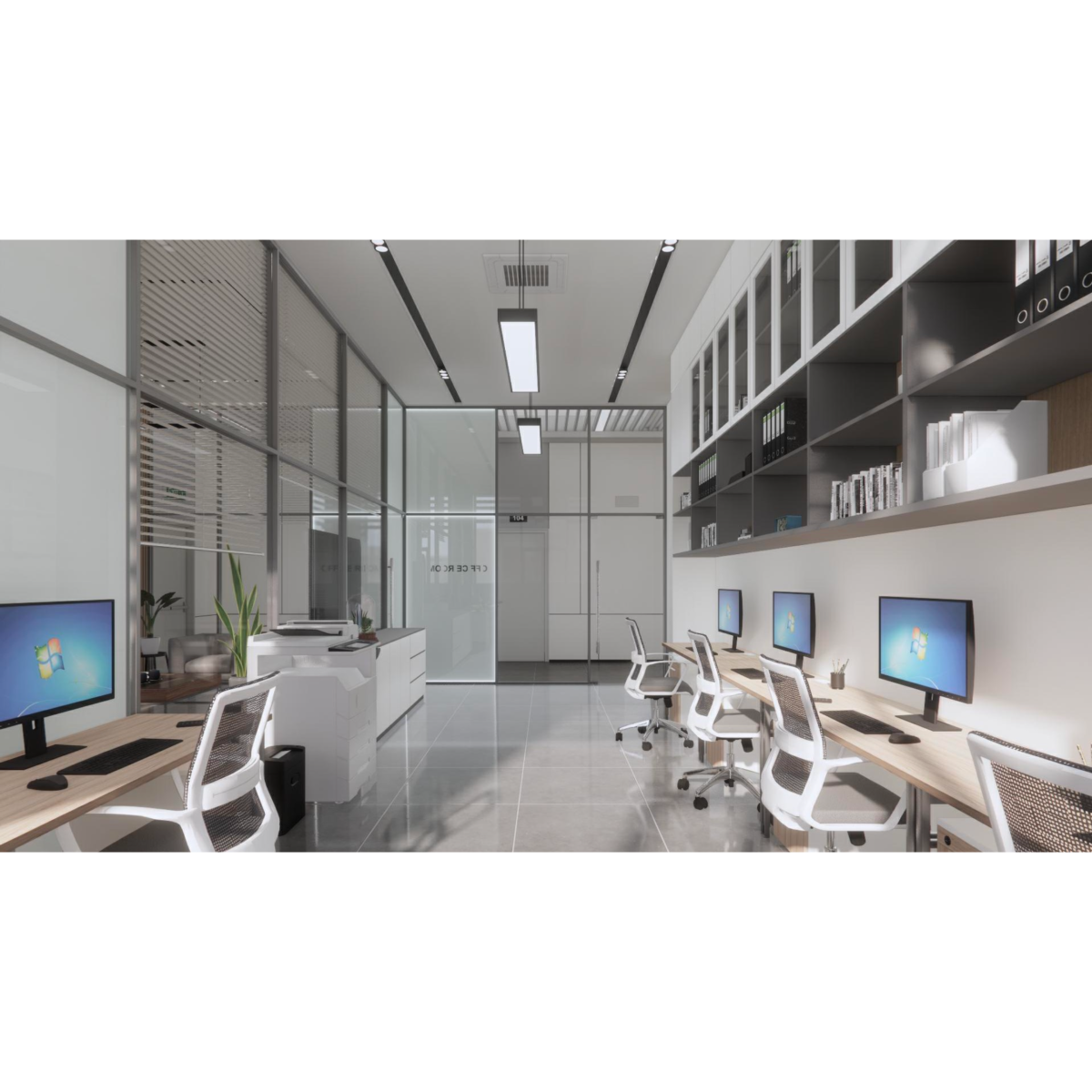 管理層辦公室兼具舒適與高效,採用落地窗與中性色調,體現簡約專業風格。員工區採開放式配置,配備人體工學座椅與共享工作桌,充滿自然採光,鼓勵團隊協作與溝通。