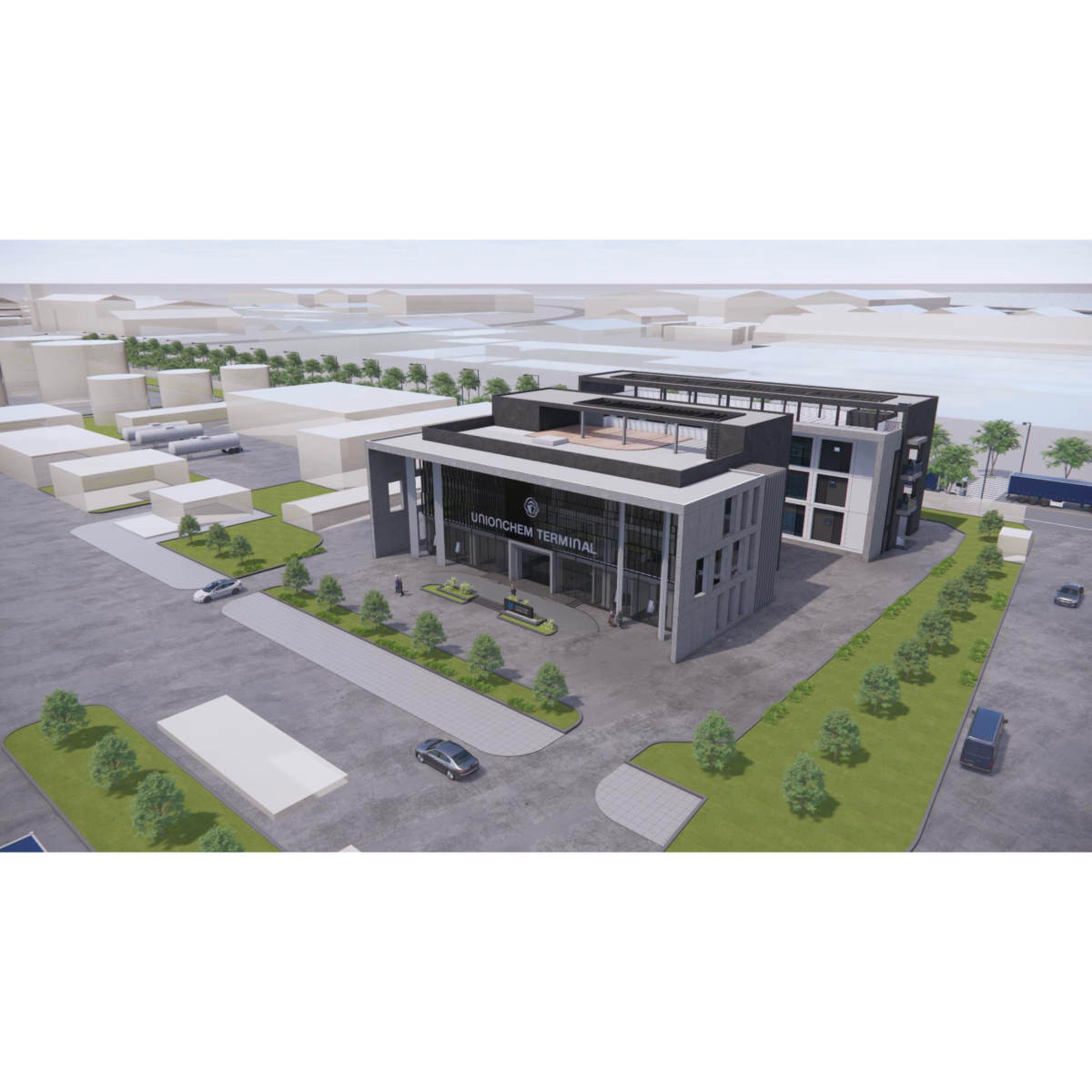 Unionchem Terminal 員工生活大樓 為現場員工與駐廠人員打造一個兼具舒適與現代感的生活空間。三層樓建築結合餐飲、休憩與運動功能,兼顧實用與美感,讓員工在工作之餘擁有放鬆與活力的生活體驗。