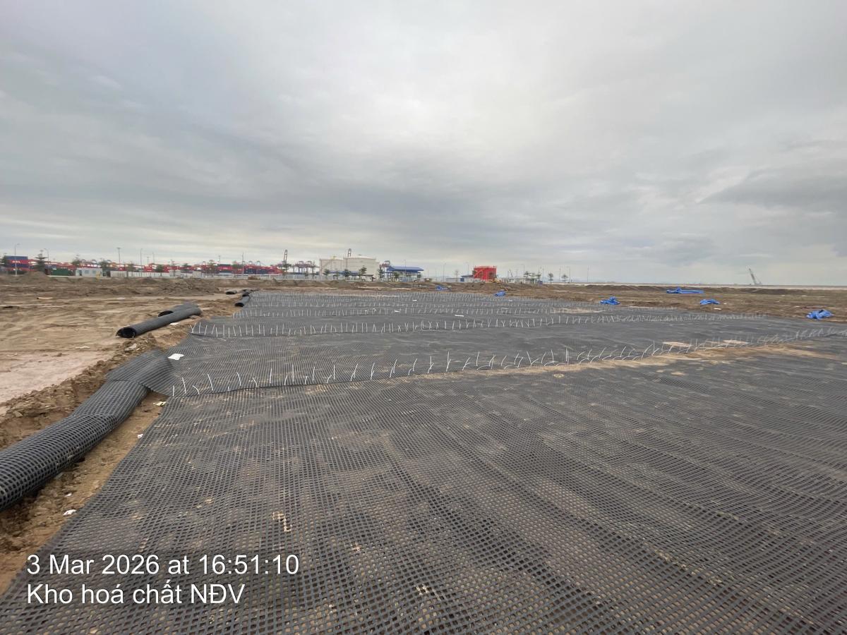 槽區建設更新 完成土工格柵鋪設施工 2026.03.04 頁面瀏覽: 69 預計將於2026年3月6日完成土工布鋪施設工。鋪設完成後,分包商將在土工布上方回填一層土方,完成地基處理工程。 上一則 2026.04.18 碼頭試樁及打樁持續更新 下一則 2026.02.28 第二次填沙及滾壓施工