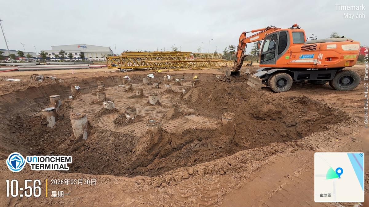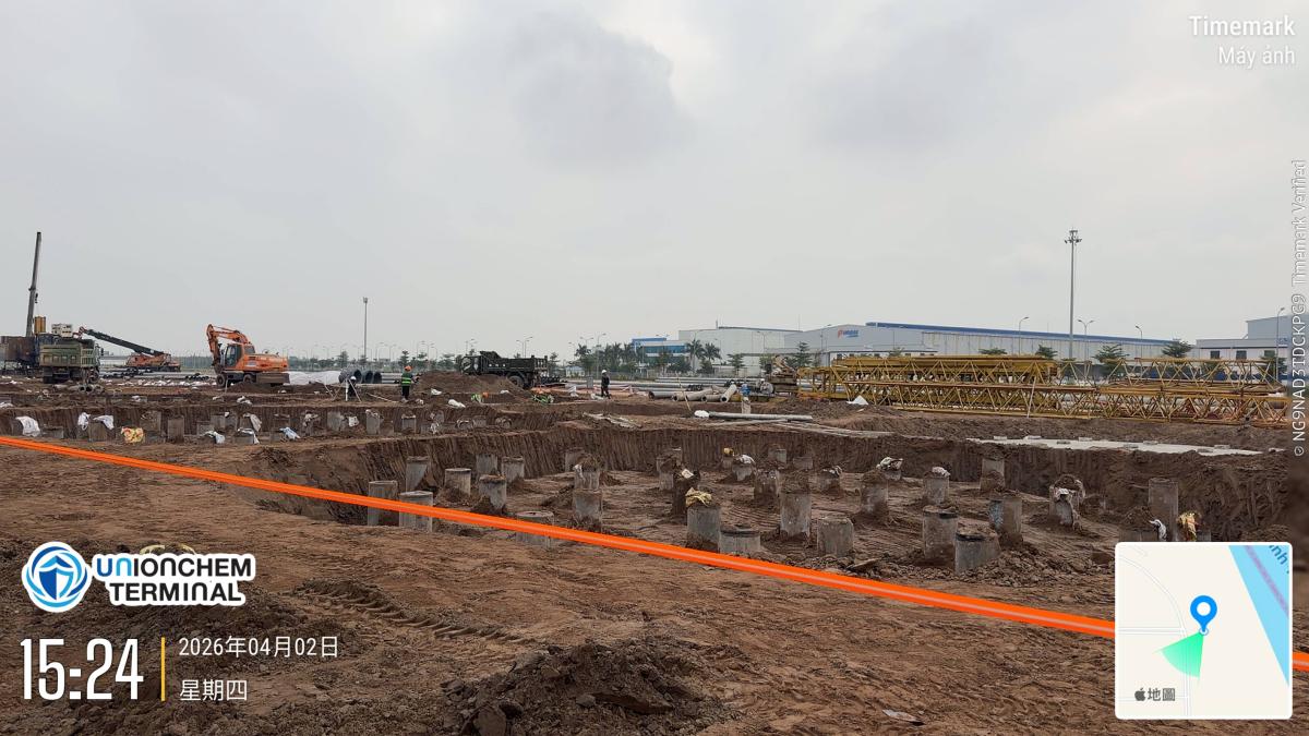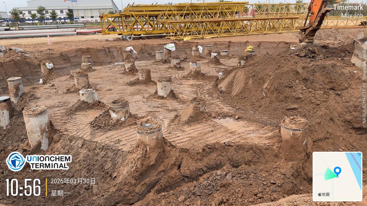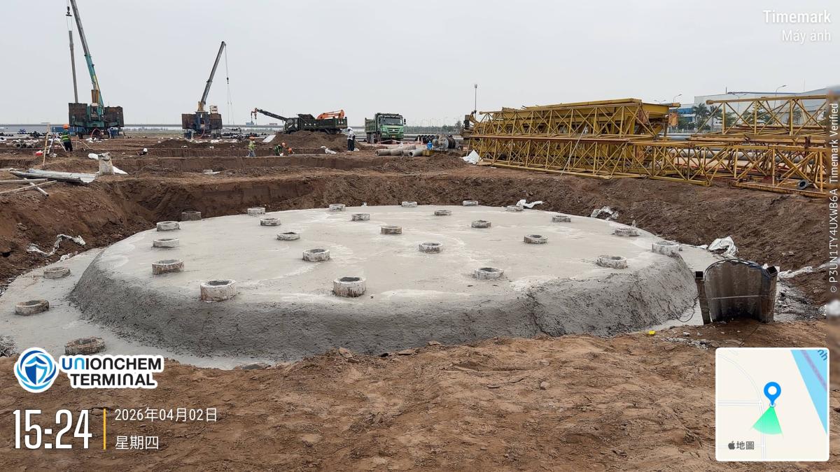 槽區建設更新 開始施作儲槽基礎 2026.04.02 頁面瀏覽: 71 部分儲槽基樁完成後,緊接著立即施作第一批次共20座1,800 CBM儲槽基礎。 上一則 2026.04.18 碼頭試樁及打樁持續更新 下一則 2026.03.20 儲槽區域進行大量打樁